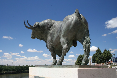 Spanish fighting bull. Source: http://en.wiktionary.org/wiki/File:Toro_de_lidia_monument,_Tordesillas,_Valladolid,_Spain_-_20050630.jpgAuthor: Josemanuel.