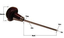 A 'burin' (chisel) consisting of the handle, shaft, cutting tip and face. Source: Transferred from en.wikipedia. http://en.wiktionary.org/wiki/File:burinpartsforweb.jpgAuthor: Original uploader was Littlerubberfeet at en.wikipedia