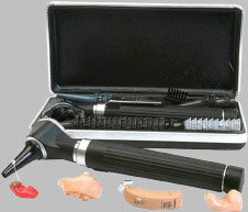An otoscope. Source: Originally from en.wikipedia; description page is/was here. http://en.wiktionary.org/wiki/File:Otoscope.jpgAuthor: Original uploader was InvictaHOG at en.wikipedia