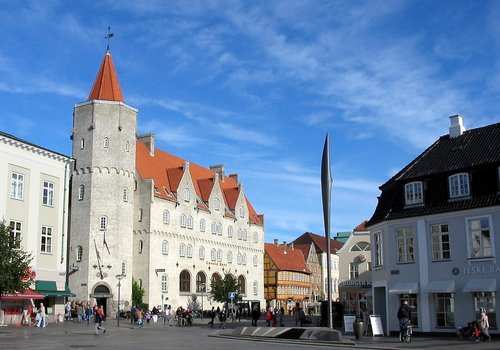 Aalborg. Source: Photograph by Tomasz Sienicki /. http://en.wiktionary.org/wiki/File:Aalborg_NyTorv_2004_ubt.jpegAuthor: © 2004 by Tomasz Sienicki [user: tsca, mail: tomasz.sienicki at gmail.com]