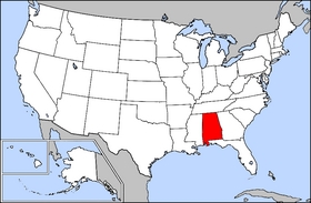 Map of US highlighting Alabama. Source: http://en.wiktionary.org/wiki/File:Map_of_USA_highlighting_Alabama.png
