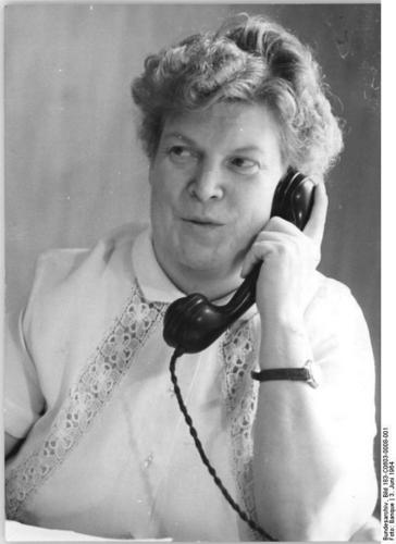 Woman making a telephone call. Source: http://en.wiktionary.org/wiki/File:Bundesarchiv_Bild_183-C0603-0008-001,_Vorbereitung_Frauenkongress,_Delegierte_Palm.jpg