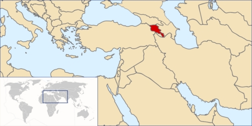 Source: Original by User:Vardion, Image:A large blank world map with oceans marked in blue.svg. http://en.wiktionary.org/wiki/File:LocationArmenia.svgAuthor: User:Rei-artur