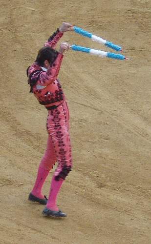 A bullfighter with two banderillas. Source: http://en.wiktionary.org/wiki/File:Padilla-band.jpgAuthor: Panarria