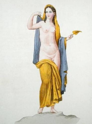 A 19th-century coloured [[engraving. Source: http://en.wiktionary.org/wiki/File:French_School,_Hermaphroditus,_from_a_Herculanese_fresco_(c.1800,_coloured_engraving).jpg