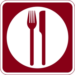 A knife-and-fork logogram is used in North American highway signage to represent a food vendor. Source: http://en.wiktionary.org/wiki/File:RM-050_Food_sign.svg