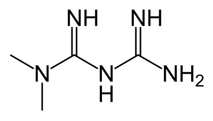 Molecular structure of 'metformin'. Source: http://en.wiktionary.org/wiki/File:Metformin.svgAuthor: Fvasconcellos 21:15, 27 October 2007 (UTC)