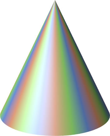 A cone (1)-(3). Source: Originally from en.wikipedia; description page is/was here. http://en.wiktionary.org/wiki/File:PovCone.jpgAuthor: Original uploader was Euchiasmus at en.wikipedia