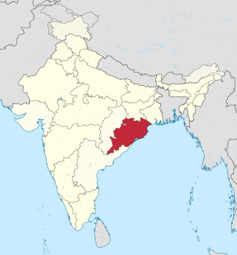 Source: http://en.wiktionary.org/wiki/File:Orissa_in_India_(disputed_hatched).svg