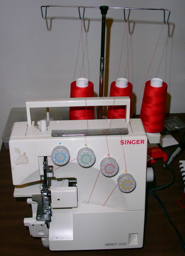 An overlock or serger sewing machine. Source: Jeremy Mikesell. http://en.wiktionary.org/wiki/File:Singer_14U344B_overlock_sewing_machine.JPGAuthor: Jeremy Mikesell