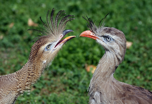 Two Red-legged Seriemas (young bird on the left, adult on the right). Source: http://en.wiktionary.org/wiki/File:Cariama_cristata_Vienna2008.jpgAuthor: Manfred Werner / Tsui
