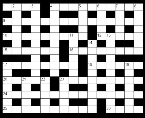 A crossword (1). Source: created from OpenOffice.org Calc. http://en.wiktionary.org/wiki/File:British_crossword.pngAuthor: User:MeekMark