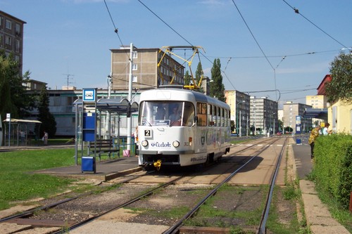 On- and off-street 'tramway' in the Czech Republic. Source: (own camera - vlastní fotoaparát). http://en.wiktionary.org/wiki/File:Most,_Vozovna_Most,_tramvaj_T3.JPGAuthor: User:Aktron