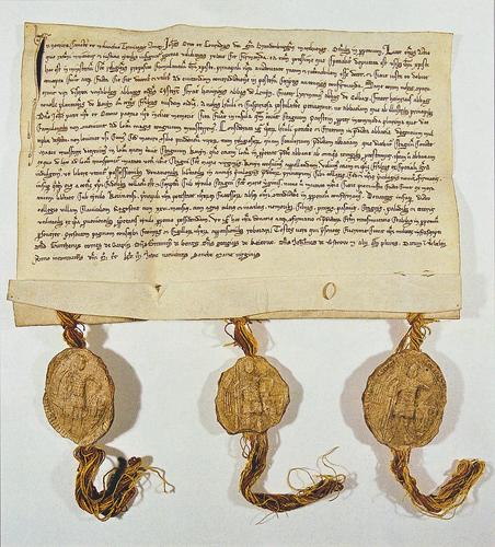 Source: Harald Schwillus, Stefan Beier: Zisterzienser zwischen Ordensideal und Landesherren, Morus-Verlag, Berlin 1998, ISBN 3-87554-321-1, page 7. (Original in „Brandenburgisches Landeshauptarchiv“ (BLHA). http://en.wiktionary.org/wiki/File:Chorin_deed_1273.JPG