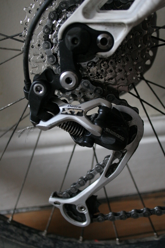 A rear derailleur. Source: http://en.wiktionary.org/wiki/File:Shimano_xt_2008_derailleur.jpgAuthor: Parrot of Doom